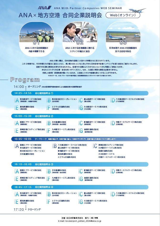 【WEB説明会/予約制】2月23日開催 『ANA主催「ANA×地方空港 WEB合同企業説明会」』に参加いたします NEW
